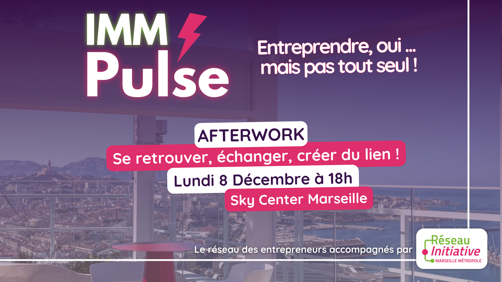 Cet évènement IMM'Pulse est proposé par Initiative Marseille Métropole. Il s'inscrit dans la dynamique du réseau IMM'Pulse : un espace pour échanger, progresser et entreprendre ensemble. En savoir plus sur le Réseau IMM'Pulse en cliquant ici !